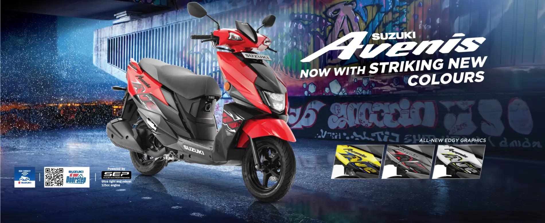 Your search for a Suzuki AVENIS dealer has brought you to Krishna Suzuki, Juhapura, Ahmedabad, your one-stop destination to buy the new Suzuki AVENIS in Ahmedabad ! Check out the on-road price, features, specifications, and accessories, and book a test ride online to experience everything on offer! Once you buy the Suzuki AVENIS, get ready for exhilarating rides every day. Offering top-notch features, specifications, and accessories, the Suzuki AVENIS delivers the perfect balance of powerful performance, stylish design, and fine craftsmanship. It also comes with a hassle-free and enjoyable ownership experience for years to come.